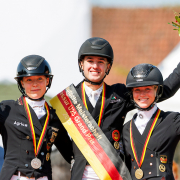 🥇Moritz Treffinger, Cadeau Noir 71,744% 🥈Anna Schölermann, Bon Scolari 70,884 % 🥉Selina Söder, Vita di Lusso 70,698% Es war eng und knapp bei der Deutschen Meisterschaft der U25-Reiter. Um der ‘Knappheit’ noch etwas mehr Würze zu verleihen, startete Moritz Treffinger auf Cadeau Noir mit Verreiten in seine Prüfung, schüttelte fassungslos den Kopf, sammelte […]