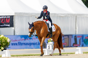 In der Vorbereitung auf die Weltmeisterschaft in Verden habe sie die Stute drei- bis viermal pro Woche geritten, sei viel mit ihr draußen gewesen, habe sie spielerisch beschäftigt und ihre Kondition verbessert. „Sie sollen hier bei der Weltmeisterschaft zwei top Runden abliefern, da kann man nicht drei Wochen vorher mit der Vorbereitung anfangen, das geht viel früher los.“ Quinn war in diesem Jahr nur auf einem Turnier vor der WM. „Sie braucht das nicht öfter. Natürlich, sie ist sieben und es kann immer etwas kommen, das junge Pferde ablenkt, aber sie war heute so gut an meinen Hilfen und die Galoppwechsel waren alle wirklich gut. Ich bin ein bisschen auf Sicherheit geritten, aber es hat riesigen Spaß gemacht. Und danach geht sie völlig entspannt am langen Zügel aus der Arena – so ist sie. Das kann man nur genießen.“
