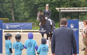 Entspannter Hengst und Siegertyp, Bon Courage – in der Siegerehrung mit Kindereskorte Vielfalt Pferd