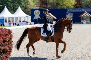 Auf den Plätzen drei und vier stellten sich erneut deutsche Damen auf: Ingrid Klimke mit einer sehr lässigen, frischen und sicheren Kür auf ihrer Weltcup-Partnerin First Class (76,950 %) und Semmieke Rothenberger auf Farrington (76,510 %). Auch dieses Paar mit vielen Highlights heute vor allen Dingen in der Trabtour.