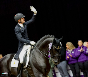 Moritz Treffinger fällt die Antwort auf sein Weltcup-Fazit nach der Premiere schwer. Ein Lachen der Fassungslosigkeit, Durchatmen, Nachdenken: „Unerwartet! Krass! Abgefahren! Überwältigend und unglaublich stolz und dankbar!“ Im Vorfeld sei sein Ziel gewesen, es in die Kür zu schaffen. Dass das mit Platz acht im Grand Prix geklappt habe, habe schon alles übertroffen. “Dass wir heute in der Kür noch mal eine Schippe drauflegen konnten, ist einfach nur cool. Ich hatte ein Hammergefühl in der Kür – vielleicht das beste je.” Er fühle aber auch eine große Erleichterung. “Wenn man die Chance bekommt, in Herning reiten zu dürfen, dann will man auch performen. Ich wollte diese Chance nutzen und zeigen, dass wir zu recht diesen Startplatz bekommen haben. Ich glaube, dass haben wir ganz gut gemacht”, sagt Moritz und ergänzt: “Ich bin sehr erleichtert, sehr happy und unheimlich dankbar auch Cadeau gegenüber. Ich liebe ihn über alles! Er ist so ein Performer – das ist der Wahnsinn.”