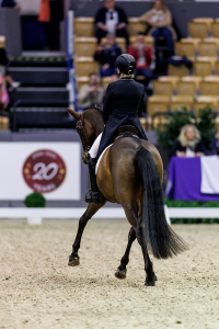 Knapp dahinter folgte mit 76,055 Prozent die Weltcup-Debütantin Laura Strobel mit Sisters Act MT OLD. Zunächst gelangen dem Paar die Zweierwechsel nicht fehlerfrei, sie wiederholten sie auf der Jokerlinie fehlerfrei und in souveräner Art und Weise. “Die erste Piaffe war schon viel lebendiger als gestern, das Rein und Raus viel besser, die Pirouetten besser – wir sind ganz ganz ganz happy. Das hat einmfach Spaß gemacht und ich hoffe, das hat man auch gesehen. Sissy ist einfach die Beste!”
