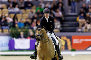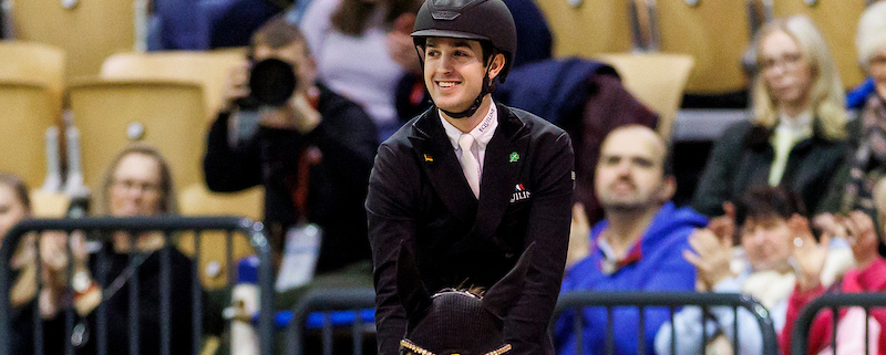 …und er fliegt vielleicht. Bei Moritz Treffinger rollten ein paar Tränen: 78,365 Prozent und Platz fünf mit Fiderdance. Was hat dieser junge Mann schon jetzt für ein Zeichen in dieser Weltcup-Saison gesetzt! “Das war ziemlich emotional für mich”, gab der 22-jährige Chefbereiter des Gestüts Bonhomme zu. “Ich wustte, dass ich besser sein muss als Platz sieben, um noch Punkte aufzustocken. Dass uns das gelungen – da war ich einfach nur erleichtert.” Bei der Schlussetappe in ‘s-Hertogenbosch wird Moritz noch einmal Cadeau Noir satteln und dann … “werden wir sehen wie da mit den Punkten ist”, lacht er. Natürlich weiß auch er, dass einige Reiter, die im Weltcup-Ranking vor ihm sind, nicht nach Texas reisen, sondern sich auf die WM vorbereiten werden. Falles es klappt und er unter die qualifizierten top Neun der Westeuropa-Liga rutscht, steht schon fest mit wem er nach Texas fliegen würde? “Nein, das ist noch offen. Alles entscheidet sich nach ‘s-Hertogenbosch.”