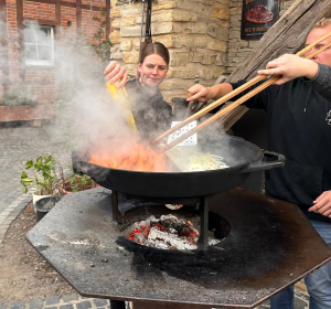 Tipp: In der riesigen Wok-Pfanne auf dem offenen Feuer wurden die Karotten mit Fanta übergossen – schmeckt erstklassig!