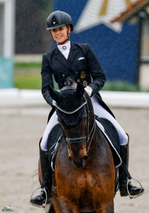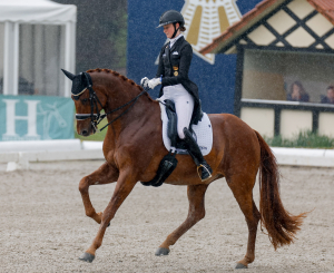 Kleinigkeiten schlichen sich heute bei dem Semmieke Rothenberger und Farrington ein – auch für die beiden war es der erste internationale Special-Auftritt. Ein Wechsel nach der Traversale gelang nicht ganz sicher, vor dem Übergang zum Trab sprang ‘Farri’ kurz um und in die Piaffe auf der Schlusslinie kam er nicht ohne ein Stocken. Aber: Auch der ClipMyHorse-Gastkommentator, Olympiarichter Henning Lehrmann, bestätigte dem Paar, eine sehr gute Entwicklung. “Es hat einfach unheimlich viel Freude gemacht”, strahlte Semmieke Rothenberger. “Das war jetzt unser erstes Freiland-Turnier, wir sind ja noch relativ grün im Seniorensport und diese Woche ist das erste Mal, dass man so ein bisschen unter die ganz, ganz Großen kommt und sieht, wo man steht. Hätte mir jemand Anfang der Woche gesagt, dass wir mit einem Sieg und einem zweiten Platz nach Hause fahren, dann hätte ich das nicht geglaubt. Also bei dem Starterfeld musste ich mich gestern echt kneifen!”