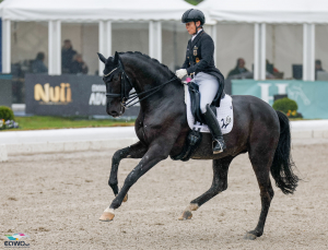 Und noch eine Special-Premiere: Für Special Blend von Isabell Werth war es das erste Turnier des Jahres und der erste Special überhaupt. Gestern sprach Werth noch darüber, dass es vielleicht den ein oder anderen Überraschungsmoment für ihn geben könne, weil er die Aufgabe noch gar nicht kennt – so war es denn auch im Angaloppieren bei X. Da musste der große Sezuan-Sohn erst mal seine langen Beine ‘sortieren’, aber den Rest absolvierte er schon mit sehr viel Power, Ausdruck und gerade in den Passagen und Traversalen echten Highlights. “Dieses Pferd ist wirklich grandios!”, war Werth selbst fast sprachlos.