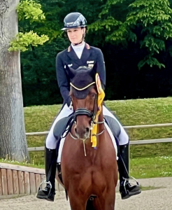 Der zwölfjährige Destacado lieferte unter Matthias Rath einen nahezu fehlerfreien Special – in den Piaffen noch nicht ganz aktiv taktsicher auf der Stelle und in den Serienwechseln noch nicht völlig im Geradeaus, aber insgesamt aus einem Guss. 72,511 Prozent und der Sieg. Carina Scholz und ihr noch recht neuer Partner Blue Hors Veneziano (15) gelang ebenfalls eine sehr gute Runde, leider mit einem ‘Kurzen’ am Ende der sonst toll gesprungenen 15 Einerwechsel. Carinas Mann, Fabian Scholz, war stolz: “Das war spitze heute!”