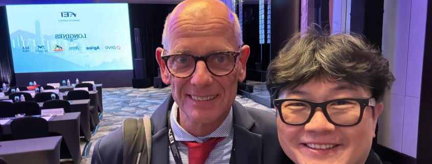 Foto oben: Klaus Roeser bei der FEI Generalversammlung in Hongkong mit weiterem Teilnehmer