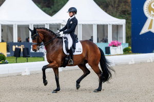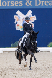 Dantiamo, 9-jährig v. Dante Weltino, ist unter dem Sattel von Lisa seit er sechs war: „Ich glaube an dieses Pferd. Er ist so souverän und leistungsbereit. Er kann mal ‚heiß‘ werden, wenn er sich unsicher ist, aber er springt nicht weg. Er möchte es richtig machen.“ Es sei einfach toll, mit welcher Routine er sich schon im Grand Prix-Viereck bewege, obwohl er erst neun Jahre sei. „Die Anlehnung hat sich noch mal verbessert, es sieht alles leicht aus und er macht es seinem Reiter auch leicht.“ Entdeckt hat Lisa den Ising-Sieger im Stall von Isabell Werth, zu der sie seit Jahren zum Training fährt. Dort hat Pawel Dabrowski ein Pferd auf die WM der jungen Dressurpferde vorbereitet, Isabell hat ihn unterstützt und Lisa hat es gesehen. „Ich fand dieses Pferd sofort spannend.“ Das war Dantiamo und tatsächlich stand er zum Verkauf – so kam er zu Lisa. „Am Anfang war es ein bisschen schwierig, weil er sehr unruhig in der Anlehnung wurde, wenn er aufgeregt wurde. Auch mit Piaffe und Passage sah es erst nicht so aus, als ob das sein Ding wäre. Ich dachte, er wird ein sehr gutes Kleine-Tour-Pferd, aber plötzlich hat er den Schalter umgelegt.“ Von einem Tag auf den anderen habe er enormen Spaß an Piaffe und Passage bekommen und habe sich plötzlich ganz leicht mit diesen Übungen getan. „Jedes Pferd hat ja meistens eine kleine Schwäche, aber bei Dante würde ich jetzt sagen: Er hat keine. Er ist vielleicht das kompletteste meiner Grand Prix-Pferde, dabei leicht zu reiten und vom Seitenbild so schön. Er ist schon sehr besonders.“