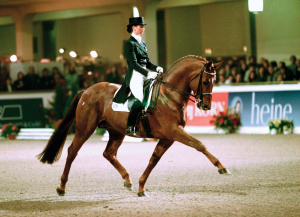 Nicole Uphoff: Relevant war ein Sohn von Rubinstein, also praktisch ein Cousin von Rembrandt. Er war unglaublich sensibel. Je weniger man da oben im Sattel getan hat, umso mehr hat er dem Reiter gegeben. Das musste man verstehen. Relevant konnte man über einen ganz lockeren Sitz glänzen lassen. Rembrandt war sehr extrovertiert, Relevant war genau das Gegenteil, sehr introvertiert. Ihm musste man ein gutes Gefühl geben und dann hatte er Spaß. Als ich das alles verstanden hatte, war er ein echtes Traumpferd für mich.