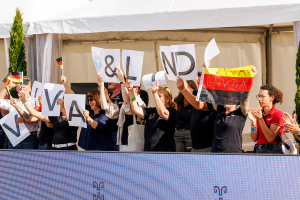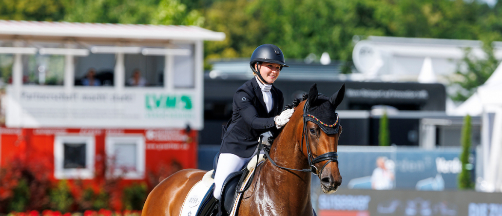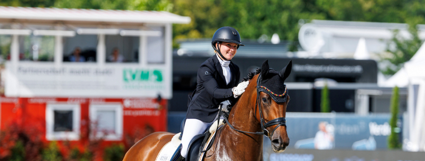 Die Besitzerin von Viva Diamond OLD ist Judith Köppel von 360° Sportpferde, Züchterin Anne Alberding hat die beeindruckende Stute aus der Birkhof’s Don Diamond-Tochter Zauberhaft gezogen. Zauberhaft und beeindruckend war auch die Fangemeinde hinter dem Paar Weiß-Viva Diamond. Mit bedruckten T-Shirts, einer Fan-Girlande, Fähnchen und lautem Jubel machten sie die Horse24-Arena zur Fanmeile für die Vize-Weltmeisterin und ihre Reiterin.