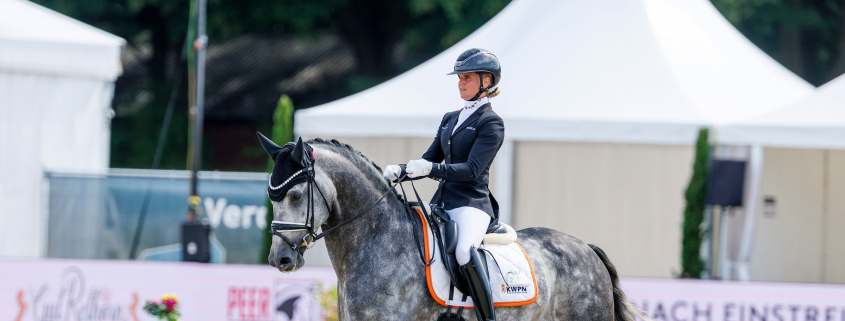 Tränen schimmerten in den Augen von Mette Sejbjerg Jensen: „Er ist einfach fantastisch! Er ist talentiert, schön und im Moment der beste Freund, den ich habe.“ „Er“ ist der Jameson RS2-Sohn Proud James. Der Fantastische wurde von dem Niederländer M. van Maasacker aus einer Glock’s Johnson-Mutter gezogen und gehört Helgstrand Dressage. Schon im vergangenen Jahr hatte der Schimmelhengst mit Nachdruck auf sich aufmerksam gemacht und sich im Finale der Vierjährigen im Rahmenprogramm der Weltmeisterschaft für junge Dressurpferde den Sieg gesichert. Damals noch unter dem Sattel von Maxi-Kira von Platen, seither hat Mette den Beritt übernommen. „Er ist einfach unglaublich, wenn man ins Viereck einreitet“, schwärmt die 36-jährige Dänin. „Er scheint einfach zu fragen: ‚Wo soll’s hingehen? Entspann‘ Dich, ich nehme Dich mit.‘“ Schon als sie ihn das erste Mal geritten habe, habe sie nur gedacht: „Wow!“ „Er gibt mir immer dieses Wow-Gefühl, das Gefühl, dass ich mit ihm zum Mond reiten könnte, wenn ich wollte.“ In der Prüfung sei er immer sehr konzentriert, auch heute, und er bringe den gewissen Show-Faktor mit. „Er kommt ins Viereck, wächst fünf Zentimeter und denkt sich: ‚Hey, schaut mich an!‘ Er hat unheimlich viel Selbstvertrauen und das liebe ich.“ Ihr Fazit nach der ersten WM-Prüfung in Verden mit Proud James: „Es war unglaublich! Das Wetter, die Arena und das Pferd!“