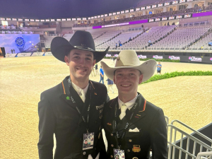 Moritz Treffinger und Fiderdance haben eine top Runde abgeliefert – mit fröhlichem Vorwärts, aber nicht mit übertriebenem Risiko, in guter, konstanter Anlehnung und mit sehr viel Übersicht geritten. Ein bisschen Eile kam beim Rückwärtsrichten auf, alles andere wirkte ausgesprochen sicher in feiner Abstimmung. “Ich bin einfach nur dankbar”, sprudelte es aus dem Finalküken. “Dankbar, dass ich dieses Pferd reiten darf, dass ich hier sein, dass ich das hier alles aufsaugen darf. Fidel ist mit seinen 17 Jahren unglaublich, so frisch und motiviert und er kämpft im Viereck zu 110 Prozent. Das ist alles so unglaublich. Meine ganze Familie ist da und mein Bruder hat heute auch noch Geburtstag.” Treffingers in Jubelstimmung! Mit 71,109 Prozent setzte sich das Paar auf Platz sechs des Finalfeldes.