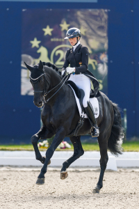 Er sei von Anfang an voll bei ihr gewesen und… „wenn er voll bei mir ist, dann sieht er auch keine Gespenster“, lacht Ingrid. „Ich hatte heute so ein Gleichmaß durch die ganze Prüfung und hatte nie das Gefühl, dass etwas anbrennen kann. Ich bin reingeritten und habe gedacht, jetzt von Lektion zu Lektion die Ruhe bewahren, schön die Ecken ausreiten und die kurzen Seiten nutzen, damit ich immer alles schön vorbereite und vom Timing her richtig bin. Gerade der Einstieg in die Pirouetten oder die Zickzack sind einfach unheimlich wichtig.“
