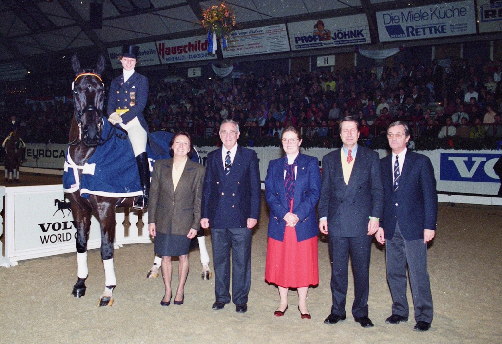 Bundestrainerin Dressur Monica Theodorescu verbindet viele bedeutende Momente mit Neumünster – als Reiterin wie als Trainerin. Der Weltcup in den Holstenhallen gilt für sie als Pflaster für ganz besonders gute Leistungen, vor allem in der Weltcup-Kür: „Nicht selten war Neumünster der Ort, an dem ein Pferd seinen internationalen Durchbruch erlebte. Das war so bei Weihegold OLD in 2016, bei TSF Dalera BB in 2020, aber auch bei Franziskus FRH in 2023. Neumünster hat manchen Pferden regelrecht den Schub auf die internationale Bühne gegeben.“ Die Geschichte bestätigt ihre Worte: Ihr Vater George Theodorescu war mit Sunny Boy der erste Weltcup-Sieger in 1987. Monica selbst ritt 1993 mit Ganimedes als erste Reiterin weltweit eine Kür für über 80 Prozent. Helen Langehanenberg und Damon Hill NRW konnten sich zwischen 2012 und 2014 dreimal in Folge den Sieg sichern und stellten bei ihrem dritten Triumph sogar einen neuen Weltrekord auf. Zum ersten Mal durchbrach eine Weltcup-Kür die 90 Prozent-Schallmauer.