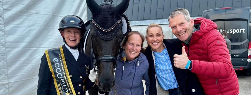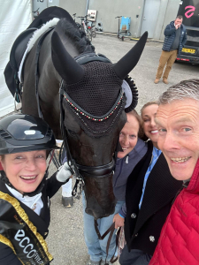 Riesen-Selfiefreude beim gesamten Team Wendy! (v.l. Isabell Werth, Wendy ☺️, Pflegerin Steffi Wiegard, Mitbesitzerin Bolette Wandt und Trainer Götz Brinkmann)