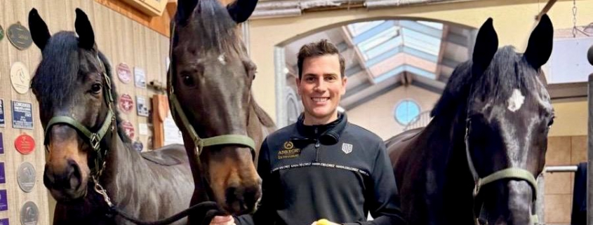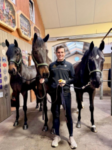 Frederic Wandres: Genau, das wird Lars (Ligus) machen. Wir arbeiten immer sehr eng zusammen. Wir tauschen auch manchmal unsere Berittpferde, wenn der eine sein Pferd mal von unten sehen möchte, der andere eine Frage hat oder eine andere Meinung möchte. So kennt Lars die Zauberflöte auch schon über das ganze Jahr, hat einige Male auf ihr gesessen und wird das Vorreiten auf der Auktion übernehmen. Ich mache das aus mehreren Gründen nicht selbst: Zum einen bin ich während der Auktion sehr stark in die Kundenbetreuung eingebunden. Das ist gerade während der Präsentation sehr zeitintensiv und da möchte ich auch für die Kunden da sein. Außerdem spreche ich meistens die Live-Präsentation der Dressurpferde für unsere englischsprechenden Kunden. Und dann kommt noch hinzu, dass ich drei Tage nach der Auktion nach Frankfurt zum Top 12 Dressage Final aufbreche – das ist der abschließende Höhepunkt unseres Jahres. Da möchte ich natürlich gut mit Bluetooth performen, mich gut vorbereiten und darauf konzentrieren können. Mit all dem im Hinterkopf ist diese Aufteilung, denke ich, sehr sinnvoll, Lars reitet, ich kümmere mich um die Kunden und Frankfurt.